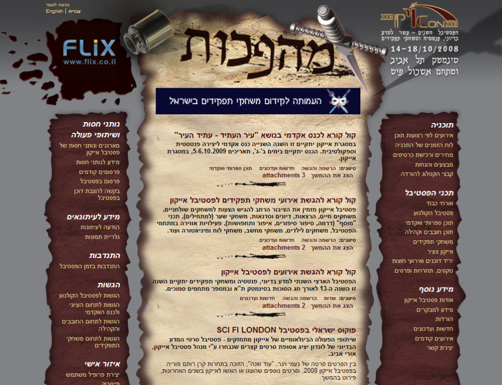 I met with the festival management several times to analyze requirements, and create extensive and elaborate documents (which later on served us in every step of the process). I coordinated the team’s work and kept to schedule and dead-lines. I was also in charge of the configuration of the Drupal and website administration.